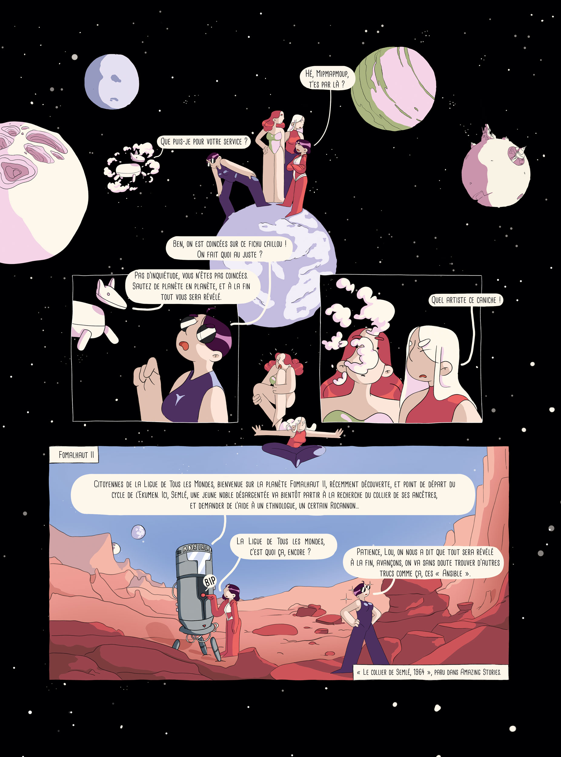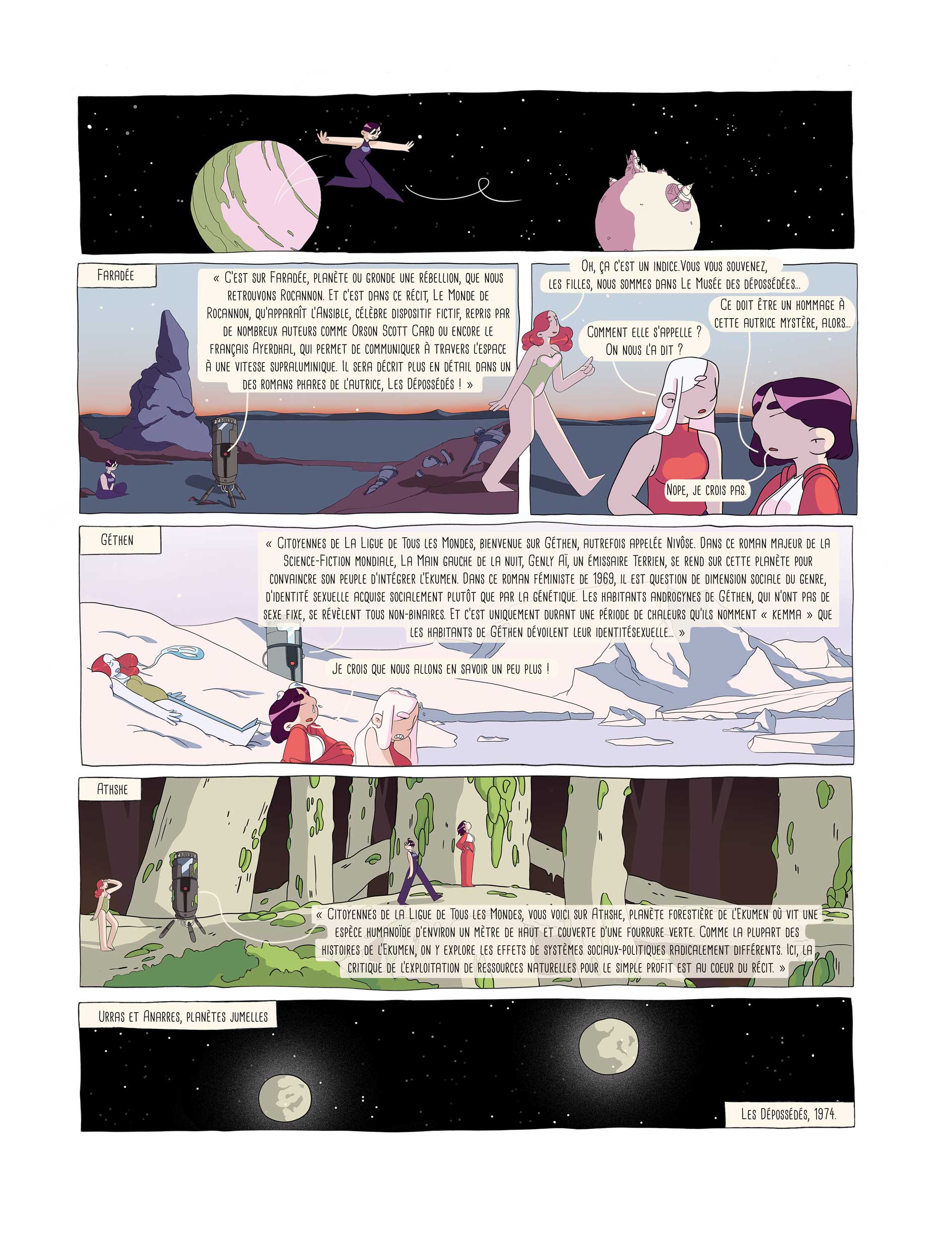 « Au Musée des Dépossédées », la fiction rattrape parfois la science. En 2045, nous suivons un groupe de lycéennes venues assister à une visite guidée qui met à l’honneur des figures bien particulières, dont certains noms vous seront familiers, d’autre beaucoup moins : Mary Shelley, Ursula K. Le Guin, Becky Chambers, Rypley ou encore Sarah Connor… dans l’ombre ou la lumière, elles ont participé à l’évolution du genre : prenez place, il reste des tickets pour une visite au cœur de la SF féminine !